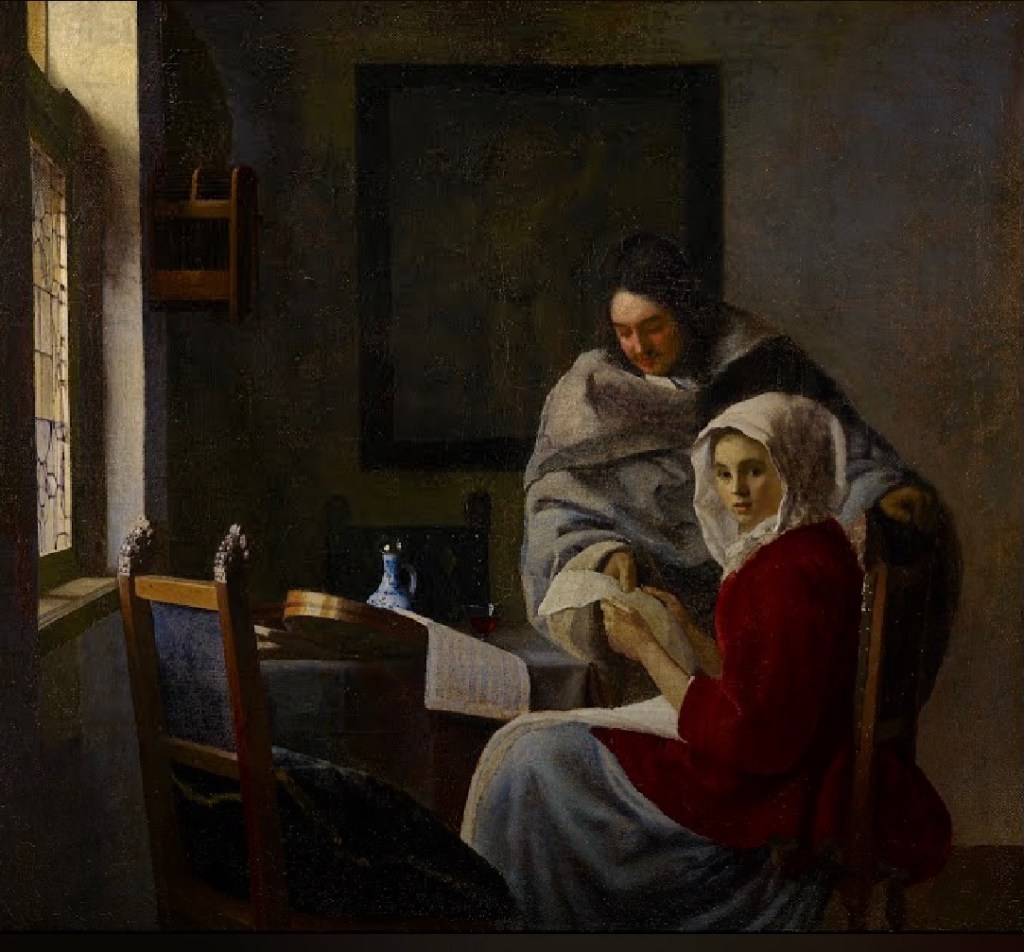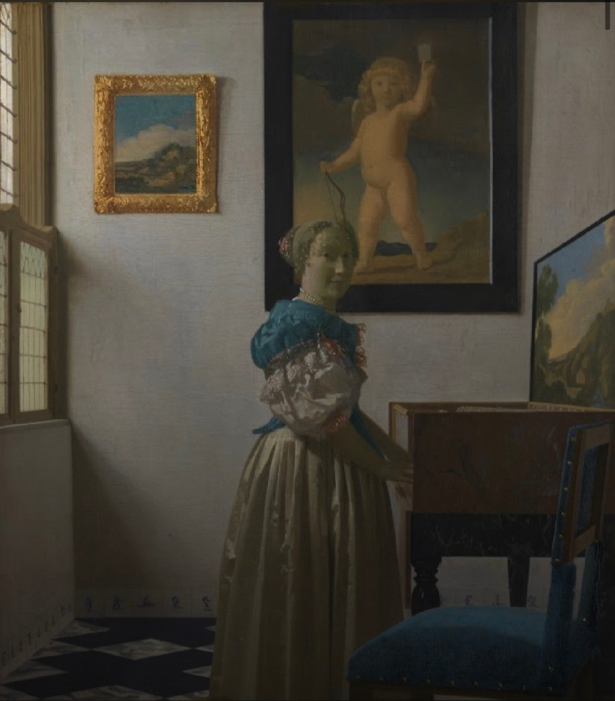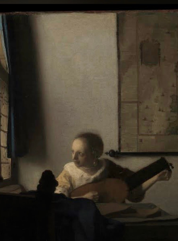 What I get in vermeer's painting is about using light to composite. I always just use the whole characters and scenery and items to composite but now I find I can use light to cut the whole characters or scenery to shape what I want.(1-1)=> (1-2)