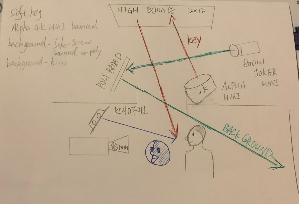 After the light lesson(Eric work shop), I learned that use high bounce to reflect the 4Klight to make more soft light, not only use light+flag to make it soft. And using poly borad to bounce light to make the background’s detail more clearly. What’s more, using sprary is also a good way to reduce the reflection(kino fill). We shot in studio by using these knowledge.